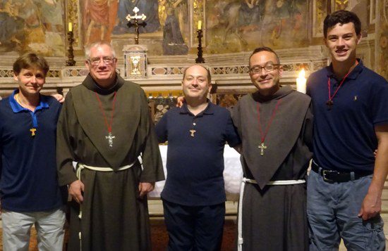 Jan Janoszka, Fr. Jim Loughran, SA, Alfonso DeRuvo, Br. Paolo Nicosia, SA, and George Nemanich at Sant’Onofrio Church in Rome. Jan and Alfonso are postulants with the Friars in Italy. George is a participant in the Friars’ Franciscan At-One-Ment Mission Project and took the Friars’ Rome summer course on ecumenical and interreligious dialogue from a Catholic perspective.